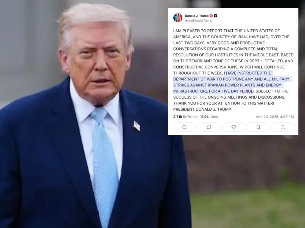 U.S. President Donald Trump has signaled a pause in planned military action against Iran, saying recent discussions between the two sides have been “constructive” and encouraging. The decision to delay potential strikes on key energy and power infrastructure appears to reflect a
